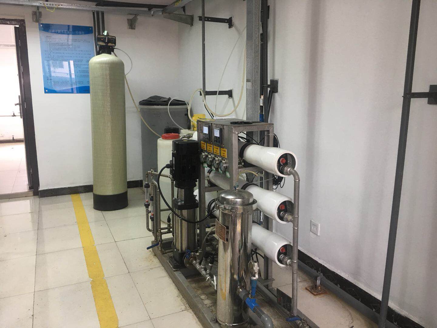 2、預(yù)處理系統(tǒng)包括:原水箱、原水泵、加藥系統(tǒng)、多介質(zhì)過濾、活性碳過濾、軟化器、保安過濾器。