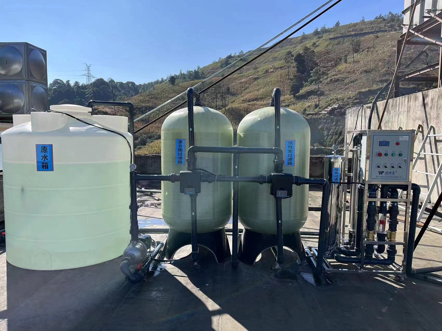 工藝流程:進水→原水箱→原水輸送泵→多介質過濾器→活性炭過濾器→精密過濾器→超濾過濾裝置(產(chǎn)水量≧10T/H)→超濾水箱→出水口。